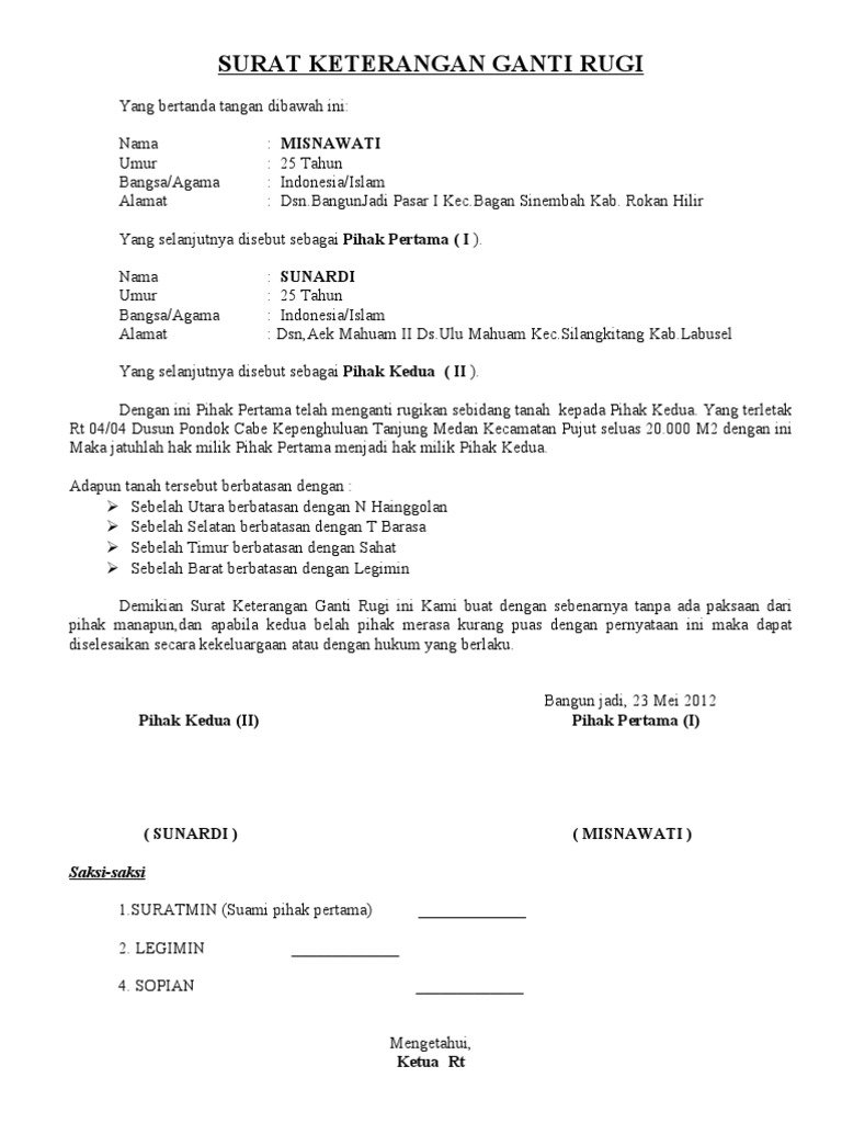 Surat Perjanjian Ganti Rugi Pdf from imgv2-2-f.scribdassets.com We did not find results for: Check spelling or type a new query. Contoh surat ganti rugi ke supplier. Maybe you would like to learn more about one of these?